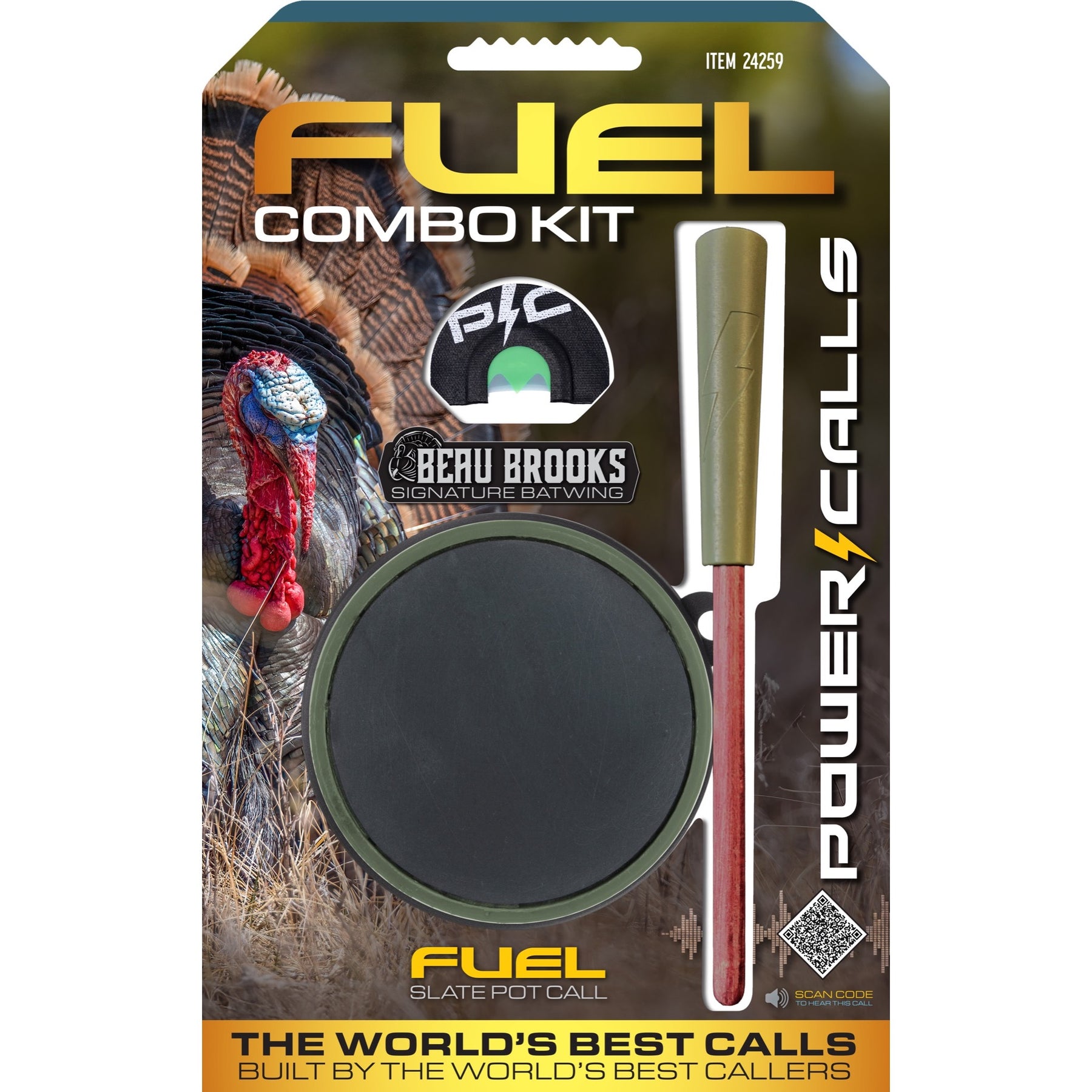 Everything you need to call Turkeys in one Combo Pack. The Fuel Slate call, with its Purple Heart striker, is a great all-around friction call. It easily replicates yelps, cuts, clucks and purrs, and can produce plenty of volume. It can also achieve soft, subtle turkey sounds for finishing birds up close. The Beau Brooks Signature Batwing Diaphragm call is unmatched for its ease of use and its diverse range of turkey sounds. These two calls together are a killer combination for all aspects of turkey calling.